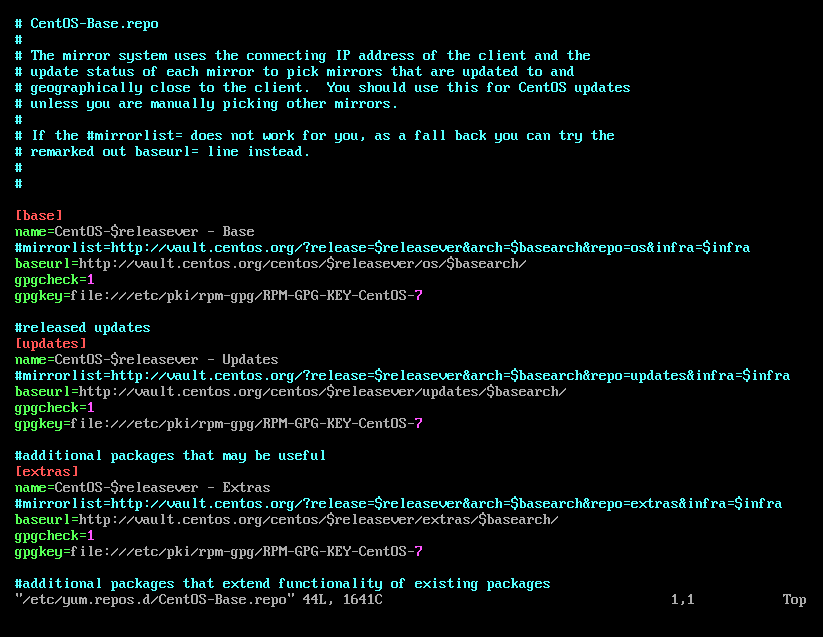 vim /etc/yum.repos.d/CentOS-Base.repo